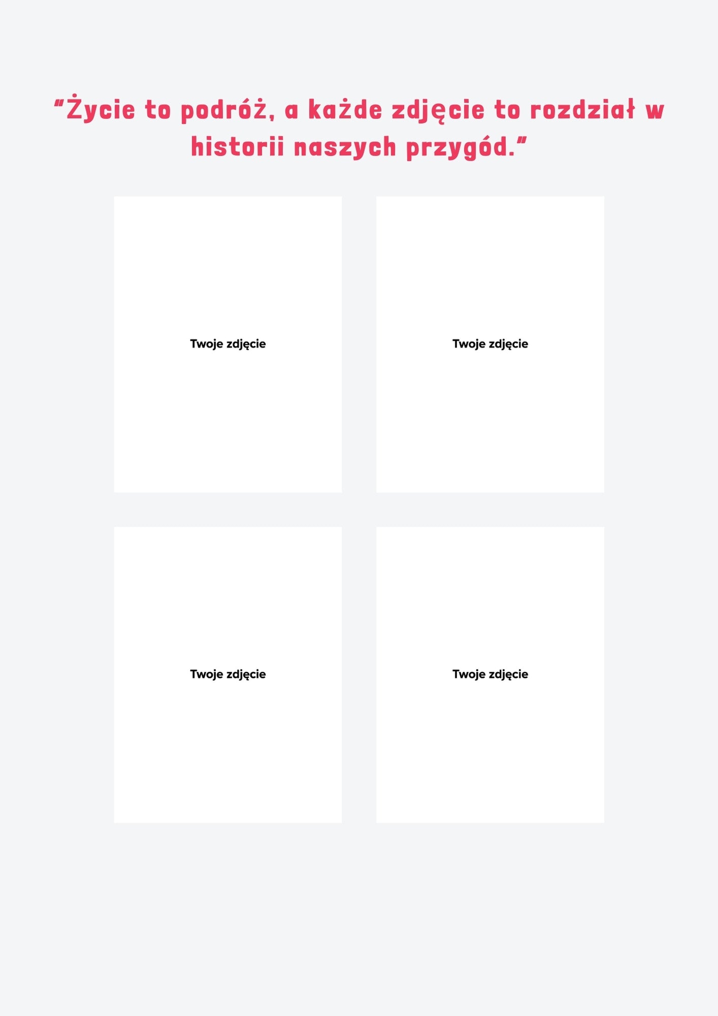 - Podczas realizacji zakupu należy przesłać 66 zdjęć + 4 na okładkę oraz podać datę pobytu/wydarzenia (data widoczna na okładce jest przykładowa, po przesłaniu Państwa daty zostanie ona umieszczona na okładce). Zdjęcia są profesjonalnie układane przez nasz zespół. Fotoksiążka produkowana jest w formacie A4. Na tylnej okładce znajduje się nadrukowany kod kreskowy. (Zdjęcie nr. 3 ma charakter poglądowy)