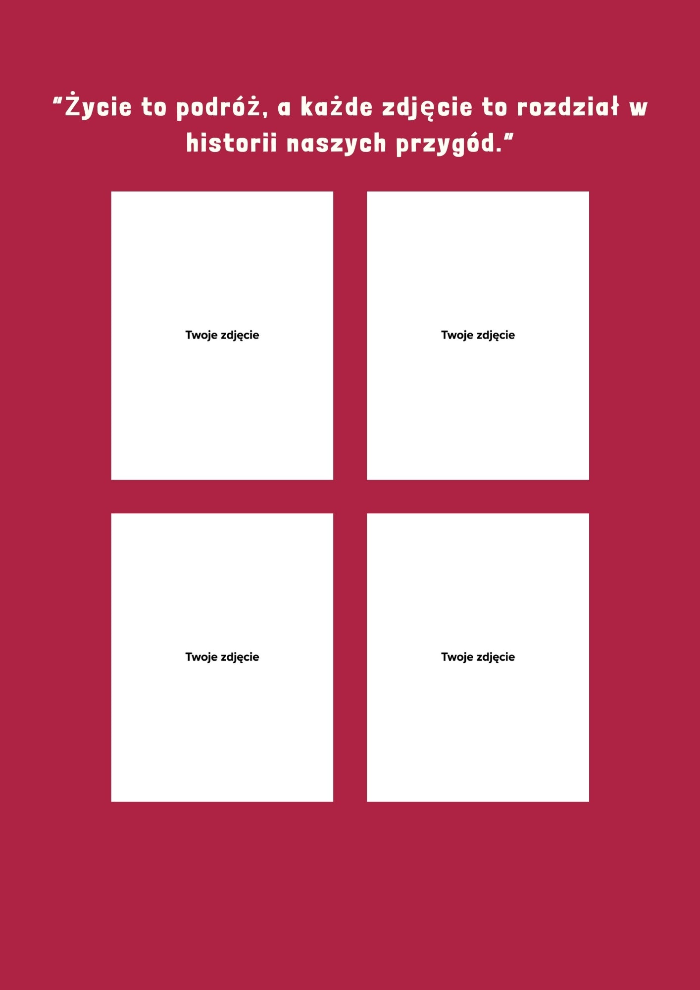 - Podczas realizacji zakupu należy przesłać 66 zdjęć + 4 na okładkę oraz podać datę pobytu/wydarzenia (data widoczna na okładce jest przykładowa, po przesłaniu Państwa daty zostanie ona umieszczona na okładce). Zdjęcia są profesjonalnie układane przez nasz zespół. Fotoksiążka produkowana jest w formacie A4. Na tylnej okładce znajduje się nadrukowany kod kreskowy. (Zdjęcie nr. 3 ma charakter poglądowy)